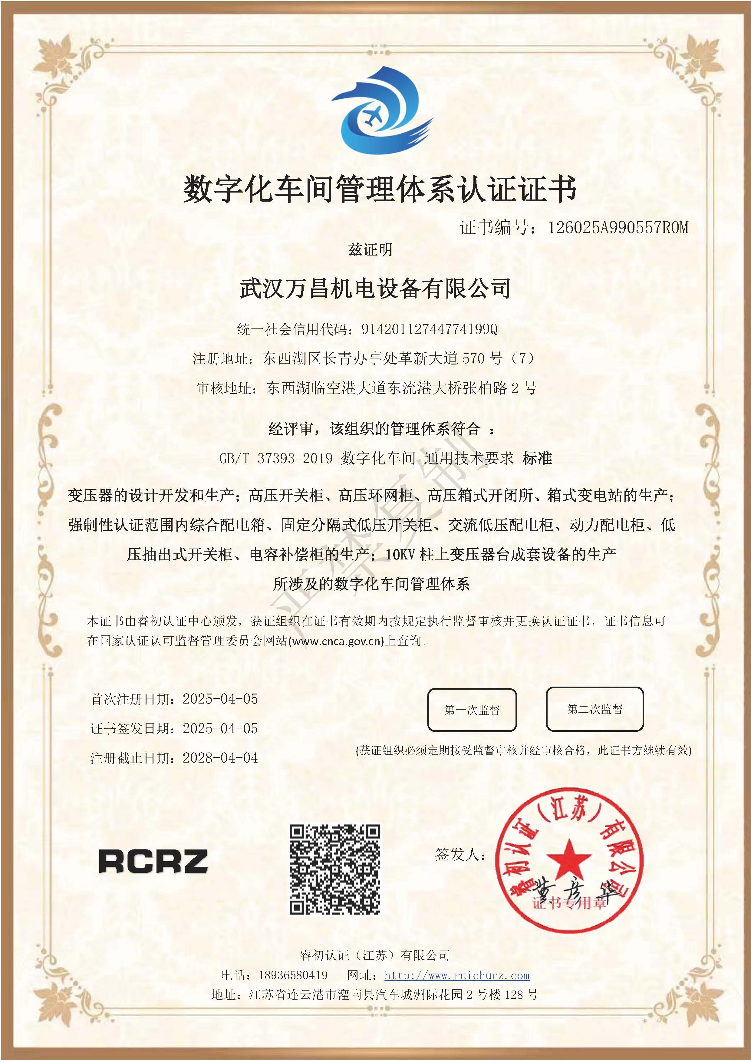 數(shù)字化車間管理體系認(rèn)證證書