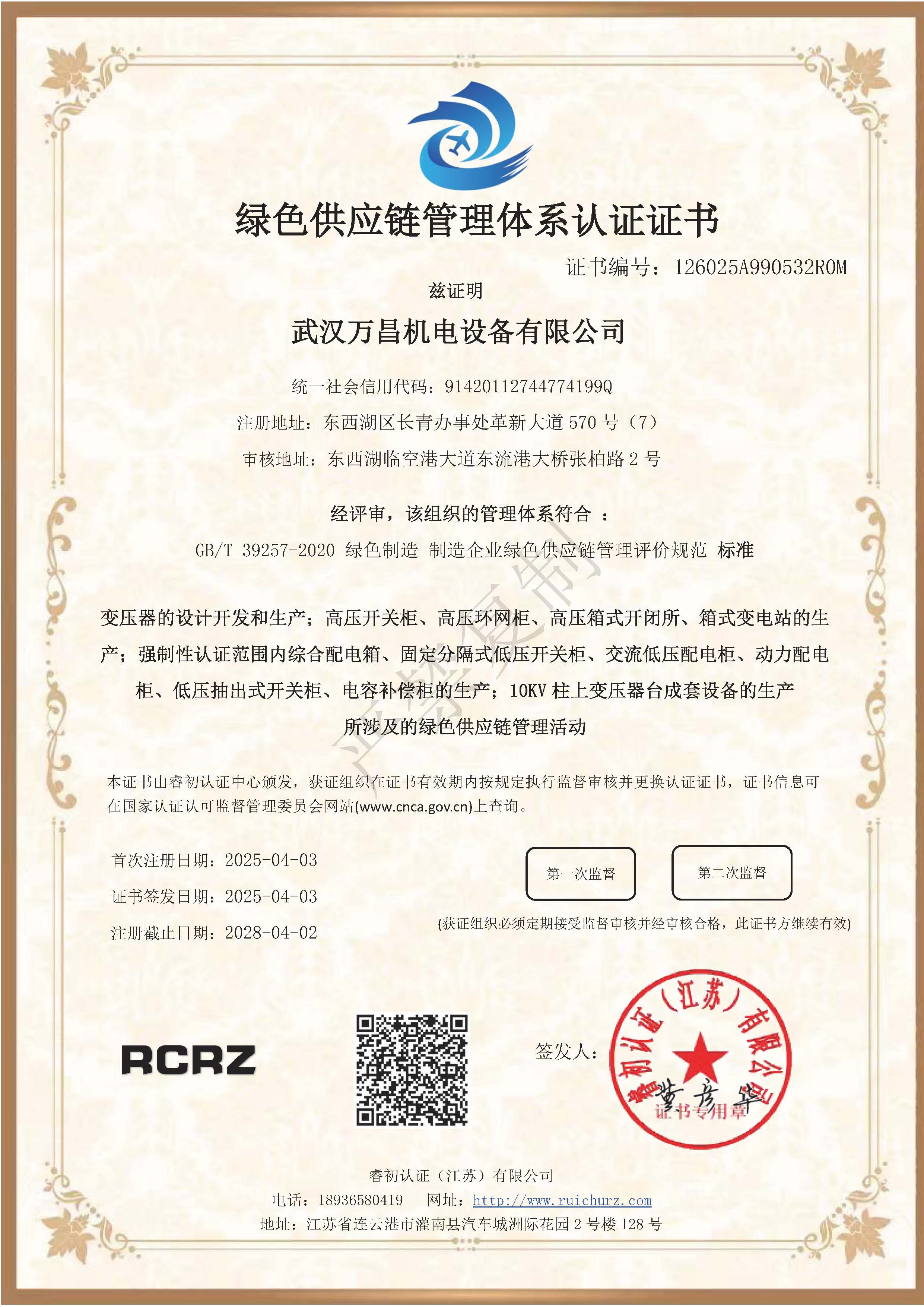 綠色供應(yīng)鏈管理體系認(rèn)證證書