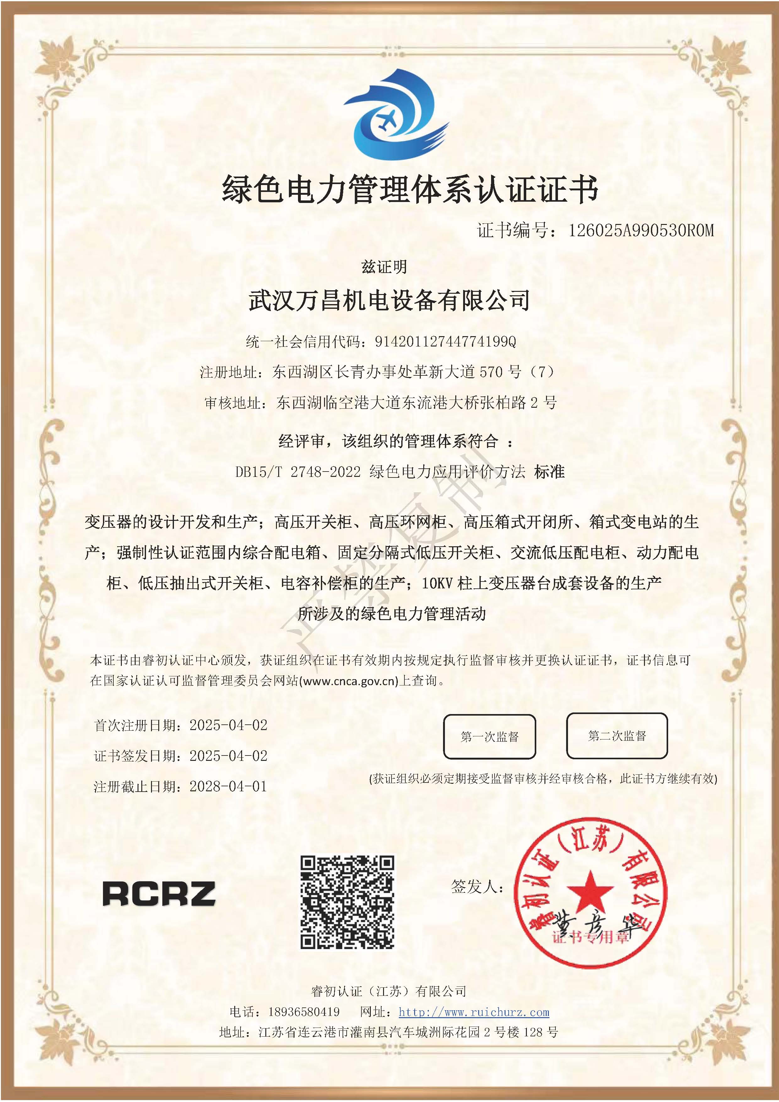 綠色電力管理體系認(rèn)證證書